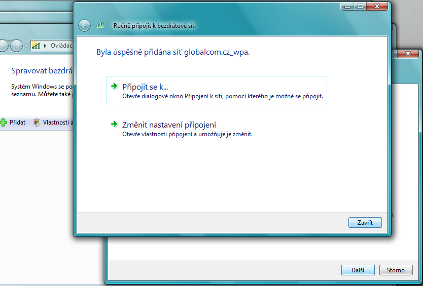 | Návod pro konfiguraci Windows Vista - připojení pomocí systémového rozhraní | |